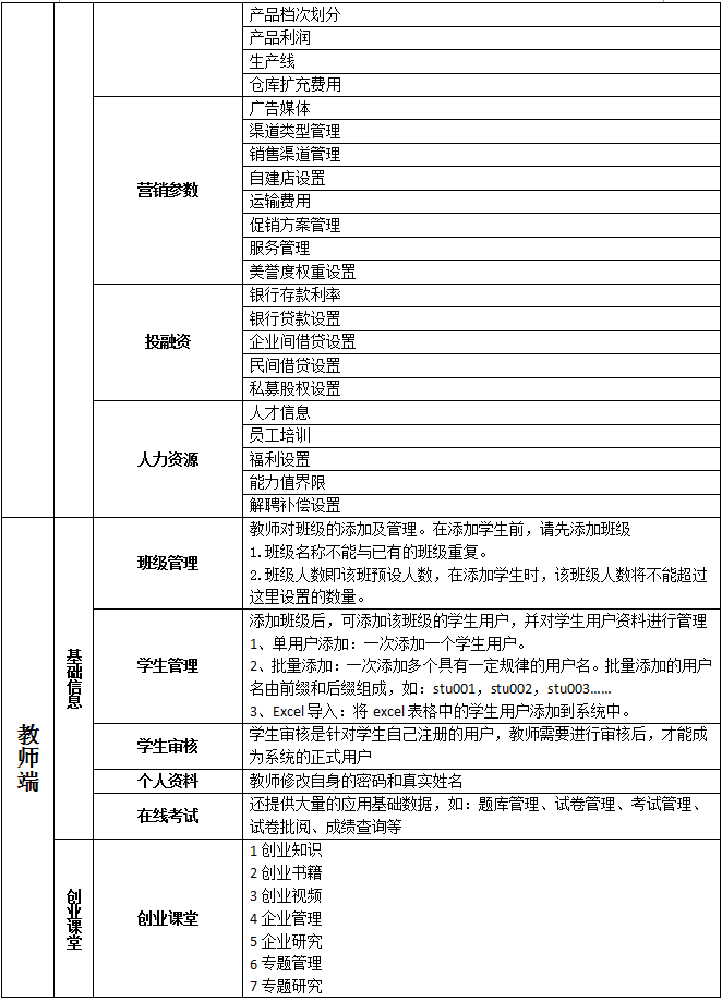 關(guan)鍵詞:大學(xue)(xue)生(sheng)創(chuang)業(ye)模擬實訓(xun)(xun)實戰教學(xue)(xue)平臺 大學(xue)(xue)生(sheng)創(chuang)業(ye)實訓(xun)(xun)教學(xue)(xue)軟件 大學(xue)(xue)生(sheng)創(chuang)業(ye)實訓(xun)(xun)教學(xue)(xue)系統 大學(xue)(xue)生(sheng)創(chuang)業(ye)實訓(xun)(xun)室解決方(fang)案